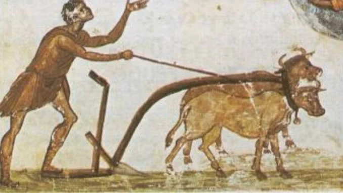 Campesino romano utilizando el arado, Museo de Las Encartaciones, España.