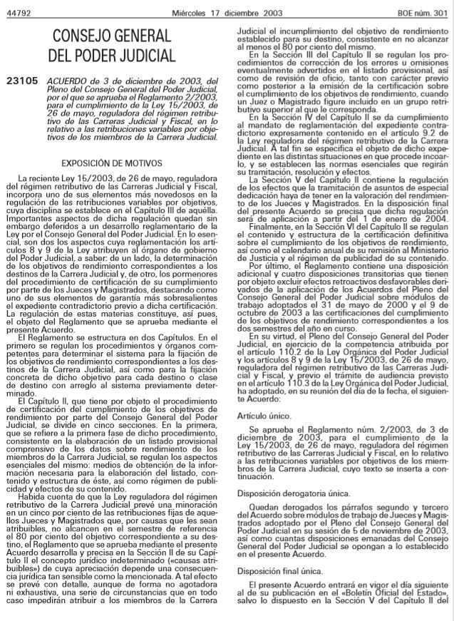 Les ofrecemos para descarga el texto integro de la citada Ley reguladora del régimen retributivo y los Informes consultivos que en su momento se emitieron por parte del Consejo General del Poder Judicial, es decir, en puridad por los propios destinatarios de la norma, en relación con la retribución variable judicial, tanto respecto a la Ley como al Real Decreto, norma de desarrollo, de 2004. Asimismo, dejamos también para su descarga el Acuerdo de 3 de diciembre de 2003, del Pleno del Consejo General del Poder Judicial, por el que se aprueba el Reglamento 2/2003, para el cumplimiento de la Ley 15/2003, de 26 de mayo, reguladora del régimen retributivo de las Carreras Judicial y Fiscal, en lo relativo a las retribuciones variables por objetivos de los miembros de la Carrera Judicial (anulado en 2006 por la Sala Tercera del Tribunal Supremo) y la Memoria Económica publicada por Jueces para la Democracia, donde tratan lo relativo a las retribuciones de los miembros de la carrera judicial y fiscal.