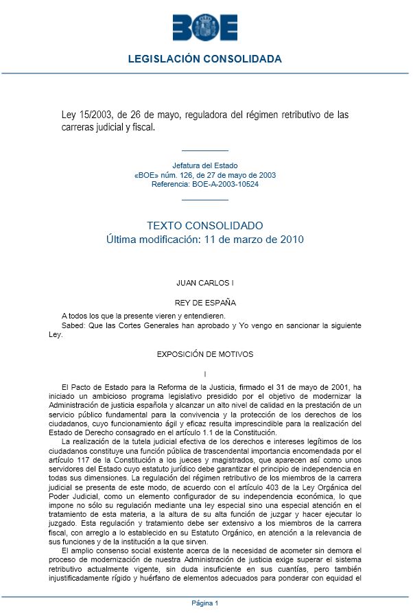 En la Exposición de Motivos de Ley 15/2003, de 26 de mayo, reguladora del régimen retributivo de las carreras judicial y fiscal, podemos leer, entre otras consideraciones, la siguiente: