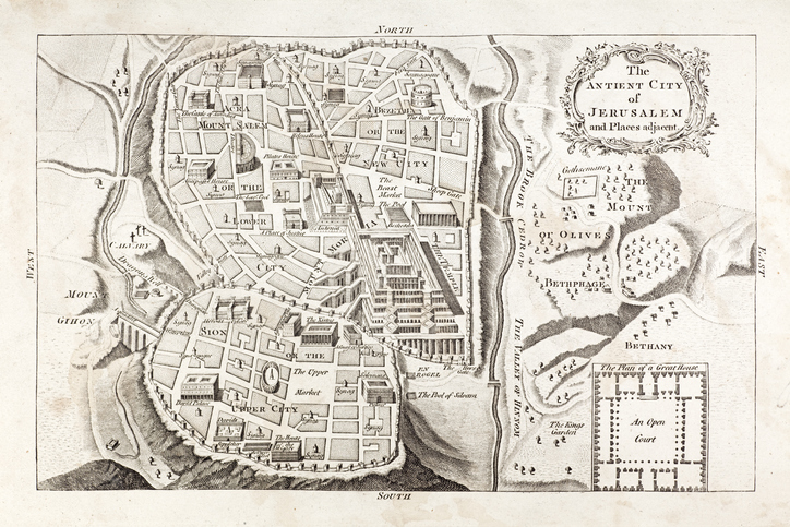 Así pues, el área que componían en total, medía 250 codos de largo de oeste a este, y 200, de ancho, y estaba bordeada por un atrio exterior, también llamado que tenía cien codos de ancho en cada lado. Sólo había pues, dos atrios construidos por Salomón. El atrio exterior era unos cuatro codos más bajo que el interior y estaba bordeado en el oeste por un muro y en las otras tres partes, por un pavimento de cincuenta codos de ancho sobre el que se alzaban los edificios para el pueblo.