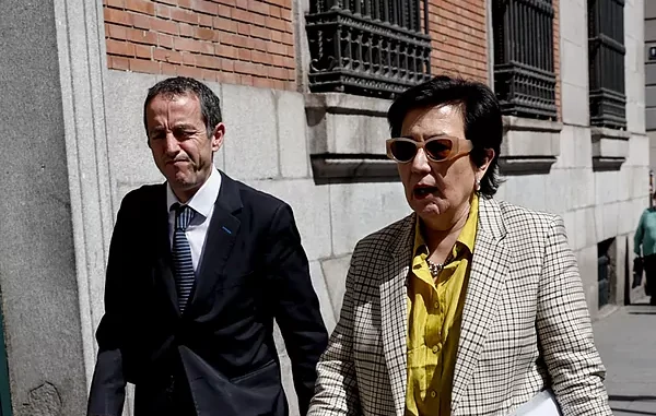 Cristina Dexeus, presidenta de la Asociación de Fiscales, a su llegada al Ministerio de Justicia. SERGIO PEREZEFE