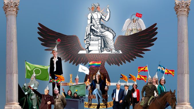 [1] En el trasfondo de la crítica actual de dicha dicotomía está, por supuesto, la triple división entre los partidos políticos críticos con la globalización neoliberal radical llevada a cabo desde hace más de treinta años por la oligarquía dominante (política, económica, financiera y cultural), cuyas posiciones son a veces altermundistas, internacionalistas y cripto-marxistas (Podemos, Syriza o La France insoumise), y otras veces antiglobalistas, estos últimos divididos a su vez entre, por un lado los liberal-conservadores que persiguen la unión o la alianza de las derechas (como Marion Maréchal Le Pen, Jean-Yves Le Gallou y Éric Zemmour en Francia o los dirigentes de Vox en España), y, por otra parte la tendencia soberanista, republicana y laica, «a la vez de derechas y de izquierdas», que encarna una línea que intenta sintetizar las aspiraciones identitarias y soberanistas, las ideas de patria y de justicia social (como Los Patriotas de Florian Philippot o el Rassemblement National / Agrupación Nacional de Marine Le Pen o tambien la asociación cultural del filósofo, prudhoniano, director de la revista, Le Front Populaire, Michel Onfray ).