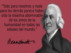 No es la benevolencia del carnicero, el cervecero o el panadero lo que nos procura nuestra cena, sino el cuidado que ponen ellos en su propio beneficio. No nos dirigimos a su humanidad sino a su propio interés, y jamás les hablamos de nuestras necesidades, sino de sus ventajas.