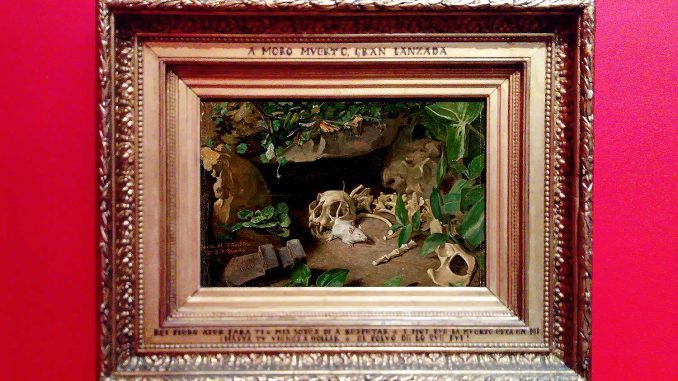 A moro muerto, gran lanzada. 1881. Óleo sobre tabla, 25 x 34 cm. FERRÁNDIZ Y BÁDENES, BERNARDO, El Cañamelar (Valencia), 1835 - Málaga, 1885.