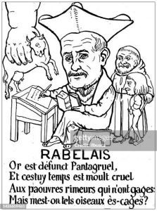 Pero uno de ellos, llamado Doubet, el más sabio, prudente y experto de todos, un dis en que estaban filogrobelizados (Nota: atontados, aturdidos) del cerebro, les dijo: - Señores, hace ya mucho tiempo que estábamos aquí sin hacer cosa de provecho y no encontramos fondo ni rio en esta materia; cuanto más estudiamos menos entendemos, lo que es para nosotros gran vergüenza y grave cargo de conciencia, hasta tal punto, que yo creo que de aquí saldremos deshonrados; puesto que no hacemos más que andarnos por las ramas en nuestras consultas y disertaciones. Por esto, he aquí lo que he pensado. Habréis pido hablar de ese gran personaje llamado el maestro Pantagruel quien ha probado ser sabio por encima de la capacidad del tiempo presente en las grandes controversias que con nosotros tuvo públicamente. Soy de opinión de que le lamemos y consultemos con él este negocio, porque seguramente si él no lo resuelve, no habrá quien lo resuelva.