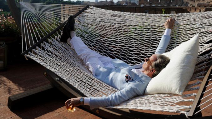 Olvidarme.La vaciedad del protagonista nos lleva directamente a problema de la disolución del yo que empieza en el siglo XX, y que el filósofo francés Deleuze nos ha hecho reflexionar profusamente, y se muestra en toda su crudeza en este siglo recién estrenado. El problema de la sociedad contemporánea posindustrial es la auténtica falta de ser, sustituida por una apariencia de ser que esconde solo el tener. Jep Gambardella es el típico cínico ilustrado que se jacta de su propia falta de cualquier moral o creencia. El mundo es una mentira, un teatro en el que cada uno interpreta su papel, bien o mal, y la medida de la interpretación la da el éxito social. La profundidad existencial de las perfomances que Jep tiene que cubrir mediante entrevistas para un público culto que compra la revista para la que escribe, en realidad, son propuestas incomprensibles, decididamente estúpidas que intentan comprar el aburrimiento de una clase absolutamente insensible al sufrimiento humano.