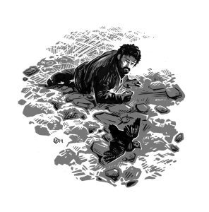 El hombre maldijo y arrojó el arma. Gimió en voz alta cuando comenzó a intentar ponerse de pie. Tenía las articulaciones como goznes herrumbrados. Se movían con aspereza, con mucha fricción, y cada flexión se lograba sólo mediante un puro esfuerzo de voluntad. Cuando por fin logró levantarse, consumió un poco más de un minuto en enderezarse, de modo de mantenerse erguido, como debe estarlo un hombre.