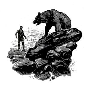 El oso se escurrió hacia un costado, entre gruñidos amenazadores, aterrorizado él mismo por la misteriosa criatura que se presentaba erguida e impávida. Pero el hombre no se movió. Permaneció como una estatua hasta que pasó el peligro, y entonces se entregó a un acceso de temblores y se dejó caer en el musgo mojado.