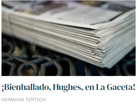 Desde que fueron cancelados los tres artículos de Hughes, «media España», como comentaba un amigo, «anda con el alma en vilo esperando ver en qué acaba el asunto». Y en tal estado sigue nuestra alma, pues desde entonces nada ha habido, nada se ha producido. Ni una sola línea de Hughes ha aparecido en La Gaceta, y tampoco en su cuenta de X (antaño Twitter).