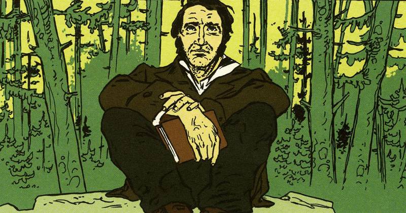 Viñeta de la biografía en cómic de Thoreau, de A. Dan y Maximilien Le Roy