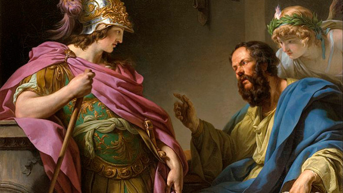 “Pero creéis -prosiguió diciendo Sócrates– que cuando el divino arquitecto del mundo organizó todos los globos que giran sobre nuestras cabezas, cuando dio movimiento y vida a tantos seres diferentes, utilizó para eso el brazo de Hércules, la lira de Apolo o la flauta de Pan?” “No es probable.”