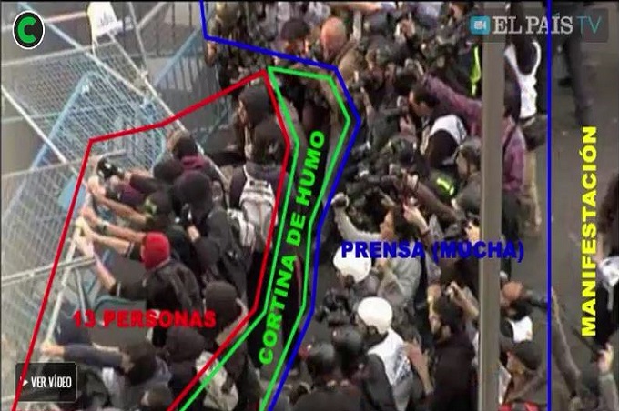 En este trabajo hablamos de la construcción mediática del relato político. De la farsa y el engaño. De los manifestantes utilizados como carne de cañón por los beneficiarios del fraudulento relato de un sistema que solo permite su sustitución por el mismo sistema, basado en la explotación del hombre por el hombre.
