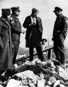 Martha Gellhorn, centro, habla con los soldados nativos americanos del 5.º Ejército en el Frente Cassino en Italia, marzo de 1944 durante la Segunda Guerra Mundial. Foto oficial británica | punto de acceso
