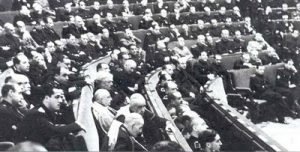 De ahí que, recogiese que el Gobierno que siguió a la crisis de 1957, en el que entraron por primera vez Ministros tecnócratas del Opus Dei, en su primera declaración programática de 27 de febrero fijase como objetivos: la reforma administrativa del Estado, estimular la vida económica del país, asimismo intensificar el diálogo político con el pueblo a través de las instituciones ya creadas… y complementar el cuadro de las instituciones jurídicas y políticas propias del Estado de Derecho.