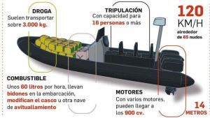 Surgen preguntas de forma inevitable, ¿quiénes y dónde se construyen las embarcaciones de los narcos?, ¿cuál es la procedencia de los motores de gran potencia que utilizan? Es evidente que se fabrican de manera ilegal, sin cumplir trámite normativo alguno, pero lo cierto es que para montar una embarcación de este tipo se necesita una amplia infraestructura que, a su vez, precisa de un importante respaldo económico, el que aportan las mafias.