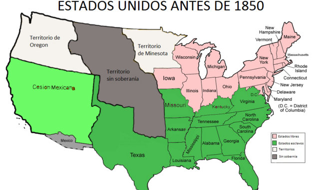 El apoyo de los Estados Unidos a la esclavitud estaba basado en un hecho práctico incontestable. En 1790, el Sur producía mil toneladas anuales de algodón. En 1860, la cifra había subido ya a un millón de toneladas. En el mismo período se pasó de 500.000 esclavos a 4 millones. El sistema, trasbalsado por las rebeliones de esclavos y las conspiraciones (Gabriel Prosser, 1800; Denmark Vesey, 1822, Nat Turner, 1831) desarrolló en los estados sureños una red de controles, apoyada por las leyes, los tribunales, las fuerzas armadas y el prejuicio racial de los líderes políticos de la nación