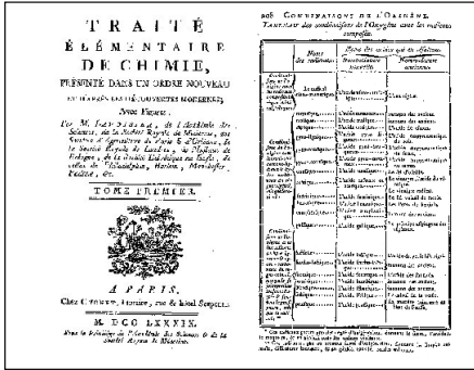 Un siglo más tarde, en 1789, Lavoisier ofreció en su Traité élémentaire de chimie una definición operacional de elemento químico: el último término alcanzable mediante el análisis químico. A diferencia de Boyle , quien no dio un solo ejemplo de elemento, Lavoisier publicó una tabla donde se exponían treinta y tres sustancias elementales, como el oxígeno, el hidrógeno, el ázoe ( nitrógeno ), el calórico, la luz, etc., la mayor parte de las cuales son correctas desde el punto de vista actual.