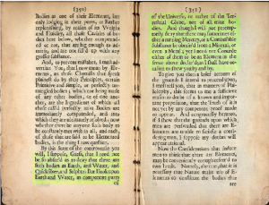 " Los fenómenos naturales, habiendo sido ordenados últimamente en una forma geométrica de razonamiento a partir de experimentos oculares, han de probar una Ciencia de la Naturaleza real, no una hipótesis de lo que la naturaleza puede ser, la perfección de los telescopios y microscopios mediante los cuales nuestros sentidos pueden avanzar infinitamente, parecen ser el único modo de penetrar en las más ocultas partes de la Naturaleza… ” (16).