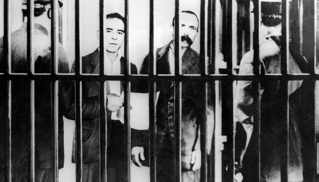 Estos amigos de Salsedo se llamaban Nicola Sacco y Bartolomeo Vanzetti. Les llevaron a juicio, fueron declarados culpables y pasaron siete años en prisión mientras continuaban las apelaciones, al tiempo que por todo el país y por todo el mundo la gente se interesaba en su caso. Tanto las anotaciones del juicio como las circunstancias que lo envolvieron indican que Sacco y Vanzetti fueron condenados a muerte por ser anarquistas y extranjeros. En agosto de 1927, y mientras en las calles la policía disolvía manifestaciones y piquetes con arrestos y palizas y las tropas rodeaban la cárcel, fueron electrocutados.