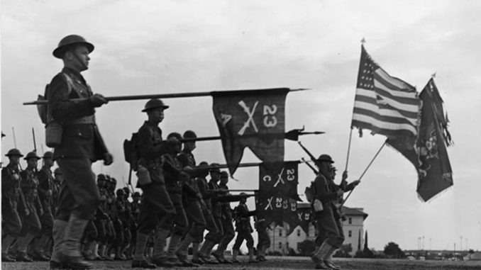 En la primavera de 1917, Estados Unidos se adentró en este pozo de muerte y engaño. En el ejército francés empezaban a producirse motines. Pronto hubo motines en 68 de las 112 divisiones y 629 hombres fueron juzgados y condenados, los pelotones de fusilamiento mataron a cincuenta personas. La presencia de tropas americanas era urgente.